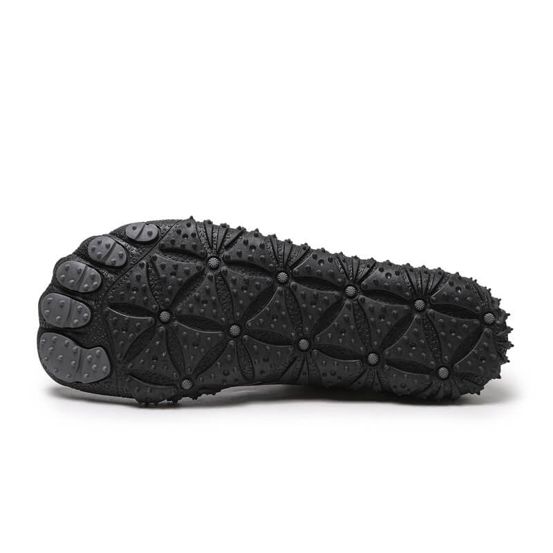 La suela gruesa protege las plantas de los pies de las conchas afiladas y amortigua los impactos con rocas puntiagudas. La goma se extiende hasta la punta para proteger los dedos de los pies de los golpes. Podrás explorar el fondo marino o las orillas de los ríos sin miedo.