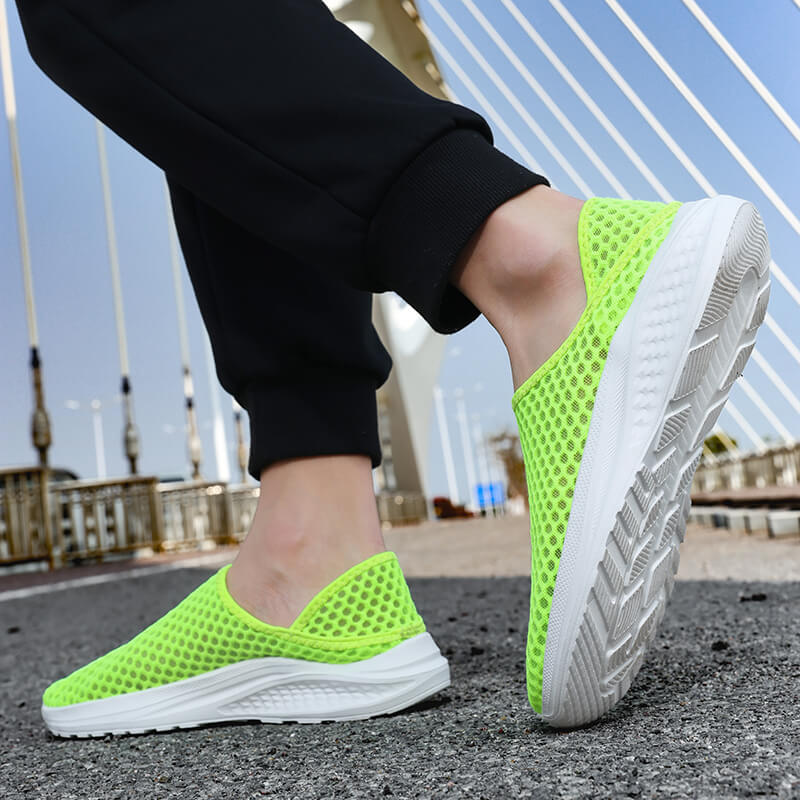 El tallo en malla transpirable Garantiza una excelente circulación del aire y un secado rápido, proporcionando una sensación de ventilación durante todo el día. Esta estructura transpirable se adapta a la forma del pie, minimizando la fricción y garantizando... comodidad óptima Hasta el final del día. Ultraligeros, estos zapatos son fáciles de poner gracias a su diseño. sin cordones, ideal para uso diario sin restricciones.
